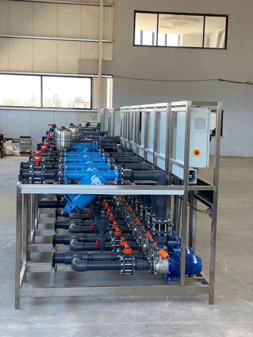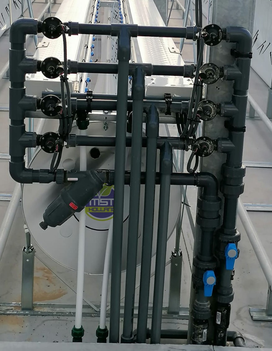 MST HOLLAND in its own production line; It designs and manufactures its own irrigation machines according to the plant type and irrigation type. Each irrigation unit is carefully planned, designed and built at the MST HOLLAND factory in accordance with the characteristics of the project and the wishes of the plant. These designs are completed on 304 quality chrome frames, with all components such as pumps, automation control panel, mixing tank, filters, valves, dosing pumps, ready to be installed in the irrigation room and shipped after being tested at the factory.