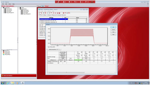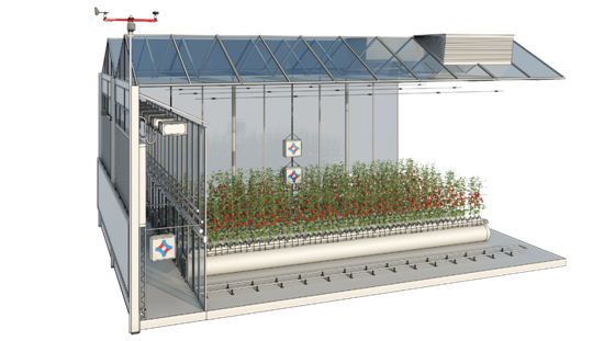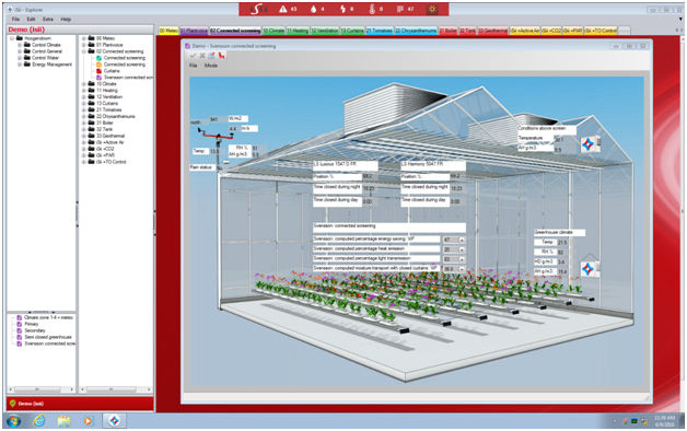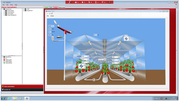 Комплексное использование различного оборудования, применяемого в (полу)закрытых теплицах, с основными элементами управления, такими как отопление и вентиляция.