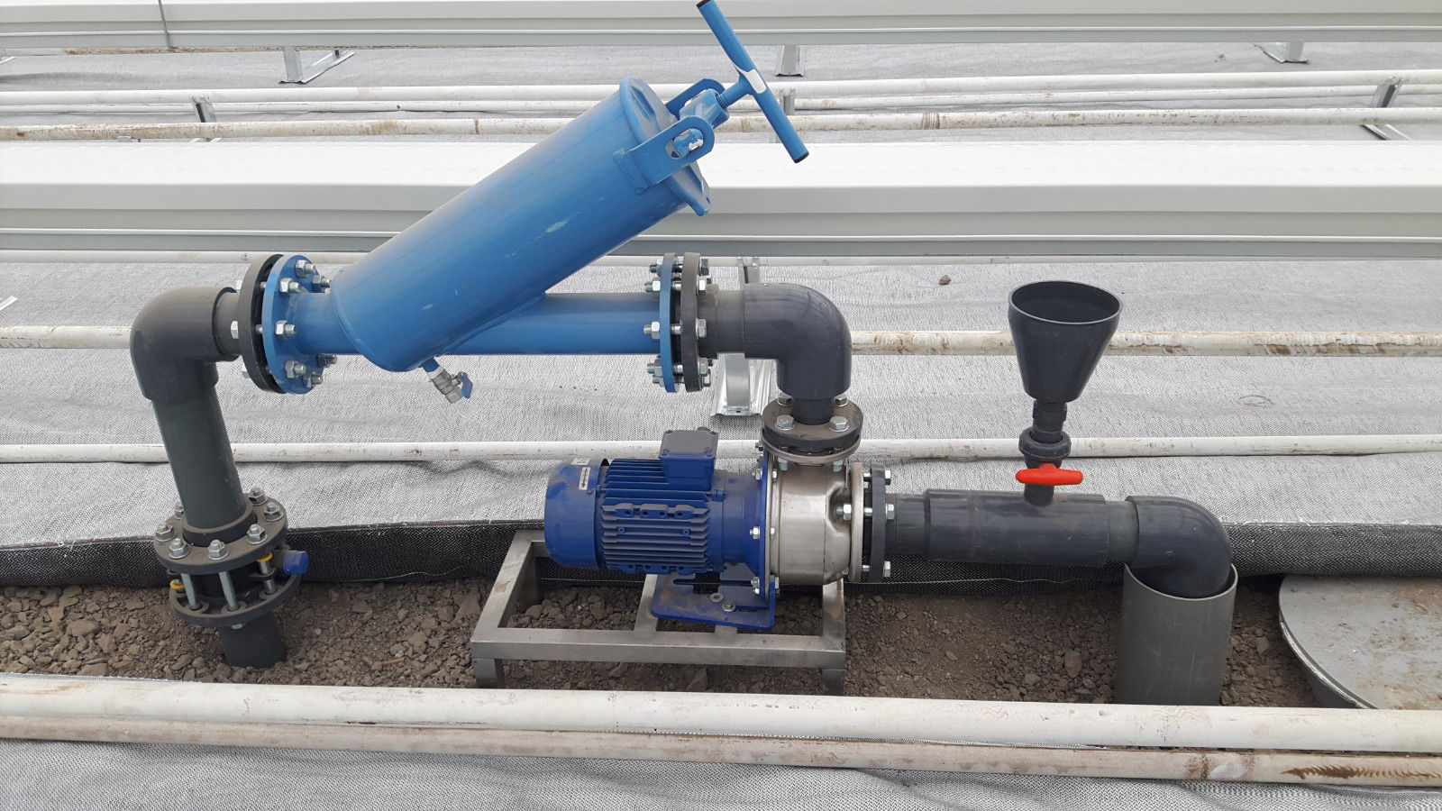 Kendi özel tasarımımız olan paslanmaz krom şase üzerine; pompa, filtre, otomasyon panosu, vana seti, su sayacı, EC-pH ölçer gibi bileşenlerden oluşan drenaj pompa setleri ve PE’ den yapılmış drenaj toplama kovası imal ediyor hazır olarak serada kuruyoruz...